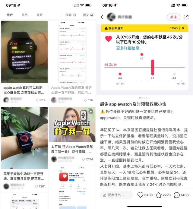 虽然Apple Watch在目前仍然只能用于趋势监控,不能用于医学临床诊断,但越来越多的用户已经把它当成了“移动诊所”。在社交平台上,有很多的用户因为收到它的高/低心率提醒,或者用ECG功能检查出房颤异常,去医院就诊后发现了问题,避免了更严重的后果。
